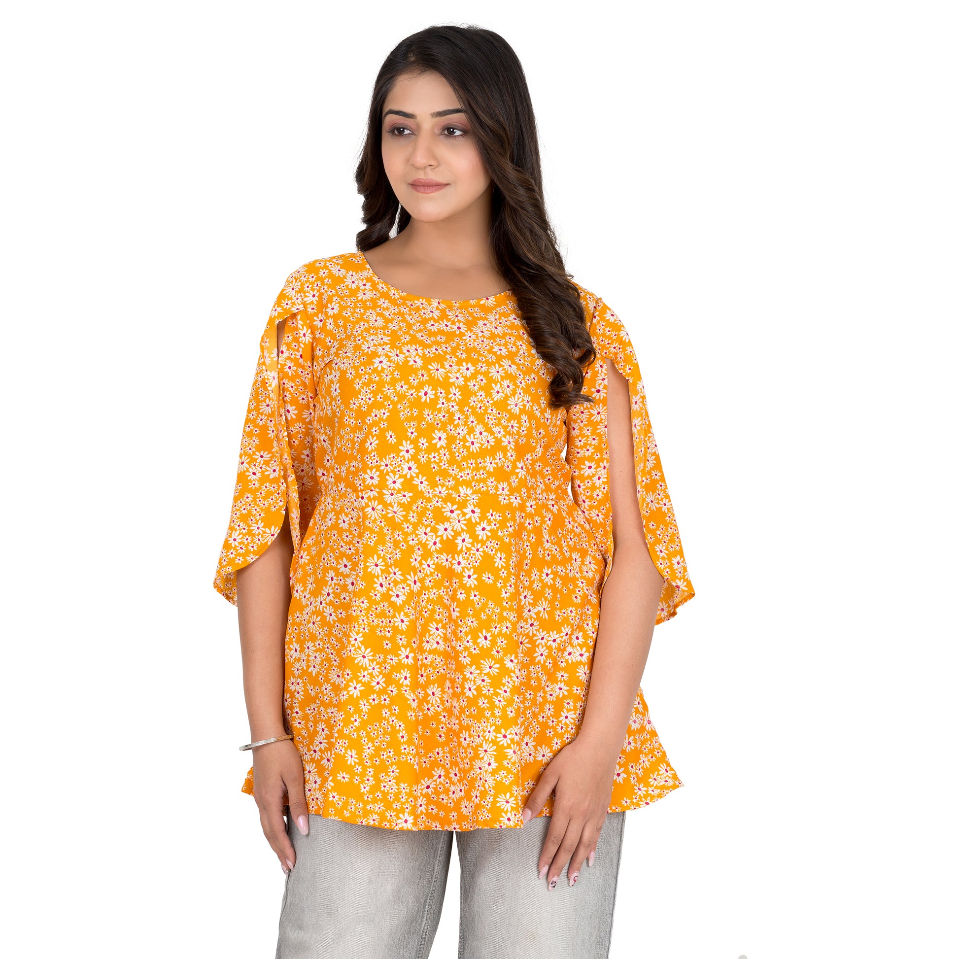 Featuring a super comfortable crepe fabric for daily wear and casual use. Women can wear it for daily use, school or college going, working and office going women. Can be paired comfortably with Denim Jeans, comfy palazzo pants.